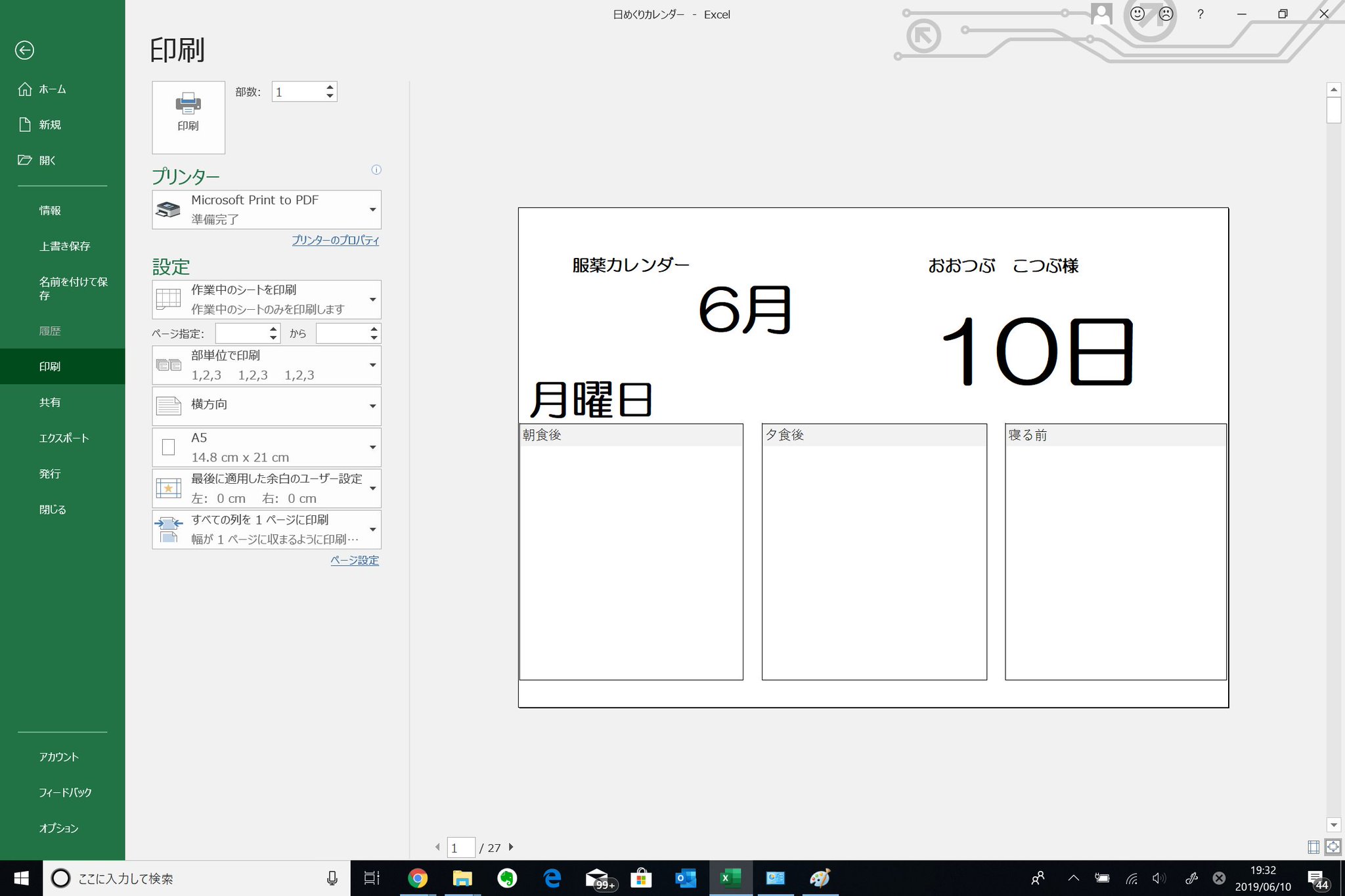 こつぶ 薬局事業承継8ヶ月目 Pa Twitter 日めくりお薬カレンダーを作ってみました エクセルに服用開始日と患者名を入れると自動で14日分作成 マクロを身につけてもっと効率よく作れるようにならなければ
